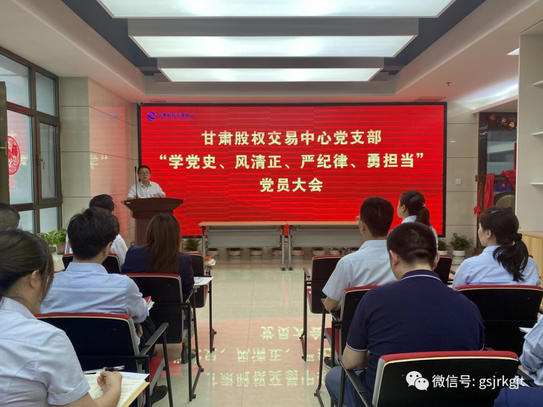 近日,甘肅股權(quán)交易中心召開“學(xué)黨史、風(fēng)清正、嚴(yán)紀(jì)律、勇?lián)?dāng)”黨員大會,黨支部書記樊亞娟主持會議,全體員工參加會議。會后,公司班子成員與每位員工分別進(jìn)行了談心談話,員工圍繞“學(xué)黨史、風(fēng)清正、嚴(yán)紀(jì)律、勇?lián)?dāng)”主題,結(jié)合個(gè)人工作實(shí)際和思想動(dòng)態(tài),深挖癥結(jié)根源查找自身不足,班子成員耐心細(xì)致聽取了員工內(nèi)心訴求和意見建議。此次黨員大會,通過聽真話、解難題、納良策一系列動(dòng)作,營造出熱心對待、真誠相見、坦誠交流的良好氛圍,激發(fā)了公司上下團(tuán)結(jié)協(xié)作、攻堅(jiān)克難、共謀發(fā)展的干事熱情,為進(jìn)一步開展好各項(xiàng)工作筑牢了堅(jiān)實(shí)的思想基礎(chǔ)。