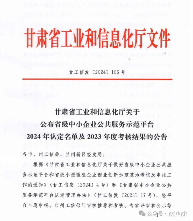 近日,甘肅省工信廳公布了《關(guān)于公布省級中小企業(yè)公共服務示范平臺2024年認定名單及2023年度考核結(jié)果的公告》,甘肅股權(quán)交易中心在128家省級中小企業(yè)公共服務示范平臺考核中榮獲“優(yōu)秀”等次。