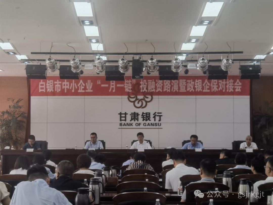 8月27日,白銀市工信局聯(lián)合人民銀行白銀市分行、甘肅銀行白銀分行,組織白銀市各縣(區(qū))工信局、銀行業(yè)金融機(jī)構(gòu)、白銀高新區(qū)管委會(huì)、中小企業(yè)代表,開(kāi)展中小企業(yè)“一月一鏈”投融資路演暨政銀企保對(duì)接活動(dòng),金控白銀擔(dān)保受邀參加并介紹相關(guān)擔(dān)保產(chǎn)品。