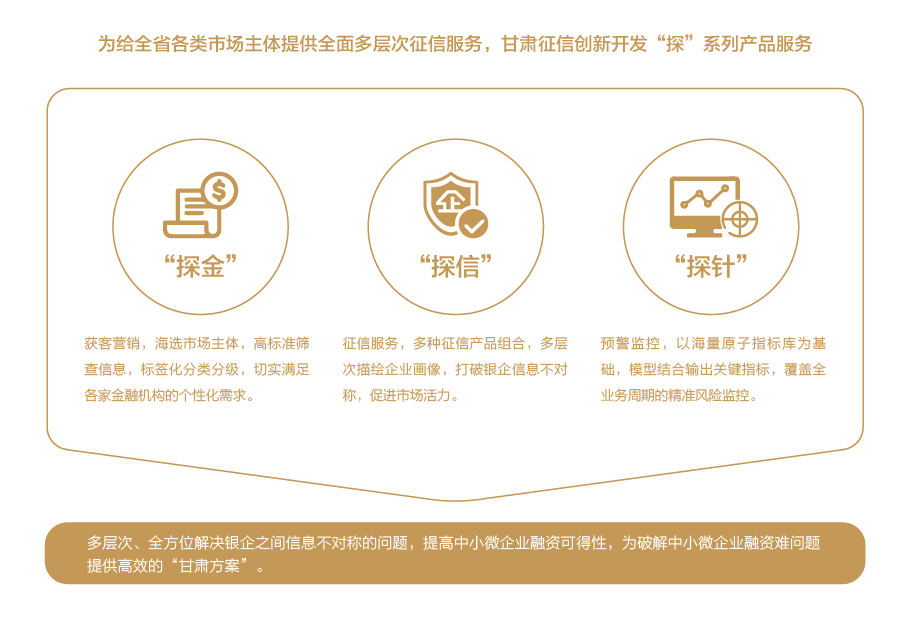 甘肅征信建立以征信數(shù)據(jù)庫、數(shù)據(jù)處理系統(tǒng)、征信智能應(yīng)用系統(tǒng)為核心的企業(yè)征信服務(wù)平臺,為客戶提供征信報告、信息核驗、信用評分、智能風(fēng)控分析決策等綜合信用服務(wù),實現(xiàn)在線經(jīng)濟(jì)金融、社會管理、公共服務(wù)等多領(lǐng)域的廣泛應(yīng)用。